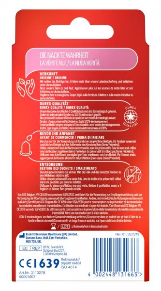 Hauchzarte Transparent-Kondome aus Naturkautschuklatex mit 20% dünnerem Material an der Spitze für besonders intensives Empfinden. Mit Easy-on Passform für perfekten Sitz und leichteres Abrollen. Mit Reservoir und Feuchtbeschichtung auf Silikonbasis.