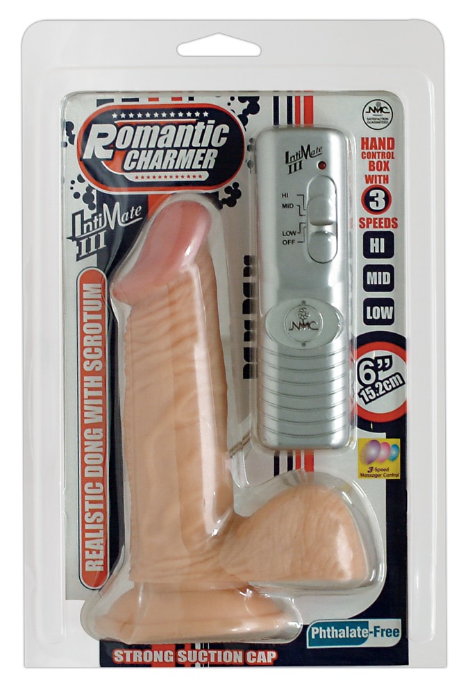 Hautfarbener Penis-Vibrator mit starker Äderung, praller Eichel, dicken Hoden und Saugfuß. 18 cm Gesamtlänge, Ø ca. 3,5 cm. Gleitfreudiges Jellymaterial. 3-Stufen-Vibration mit Reizregler steuerbar. (Batterien bitte extra bestellen: 3 x Mignon).