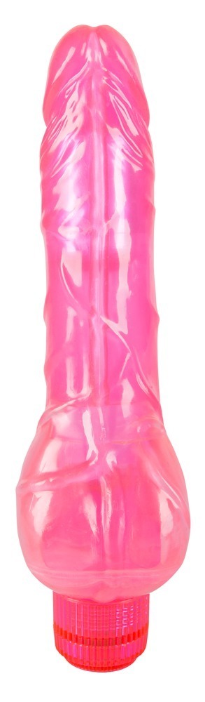 Pinkfarbener Vibrator, der Flüssigkeit aufnehmen und nach Drücken wieder abspritzen kann. Gesamtlänge 24,5 cm, Einführtiefe ca. 14 cm, Ø 3,4 bis 4,2 cm (Schaft), 6,8 cm (Hoden). Material: PVC, ABS. (Batterien bitte extra bestellen: 2 x Mignon/AA)