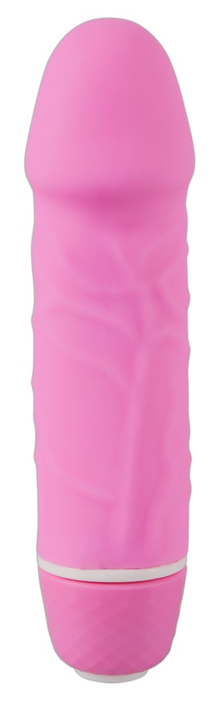 Mit 7 Funktionsarten! Rosafarbener Penis-Vibrator mit angedeuteter Eichel und ausgeprägter Äderung. 7 Vibrationsarten per Knopfdruck. Gesamtlänge 12,5 cm, Ø 2,7-3 cm. Material: Silikon, ABS. (Batterie bitte extra bestellen: 1 x Mignon/AA)