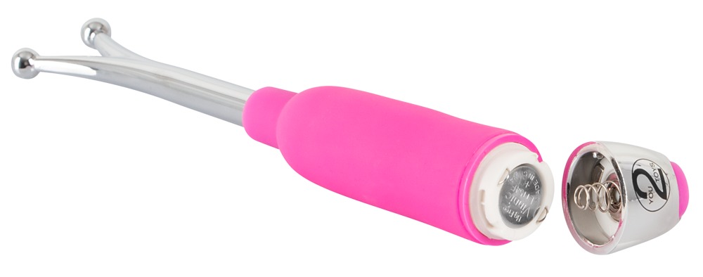 Bringt die Lust auf den (Höhe-)Punkt! Spezial-Vibrostab mit Kugel-Doppelspitze zur gezielten Klitoris-, Nippel- und Eichel-Stimulation. 7 Vibrationsmodi. Gesamtlänge 16,5 cm. Pink/silberfarben. Metall, Silikon, PU-Beschichtung. Inklusive Batterien.