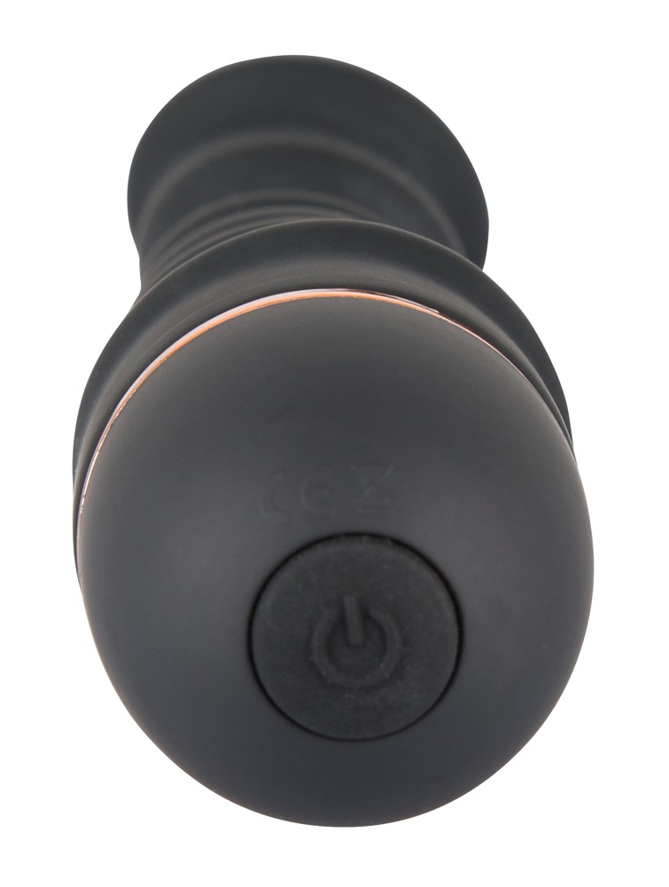 Schwarzer Vibrator mit angedeuteter Eichel und 5 stimulierenden Reizwellen am Schaft. Die sagenhaften 20 Vibrationsmodi sind per One-Button steuerbar. Gesamtlänge 16,5 cm. 2,5-3,3 cm. Material: Silikon, ABS mit PU-Beschichtung. (Batterie bitte extra bestellen: 1 x AA)