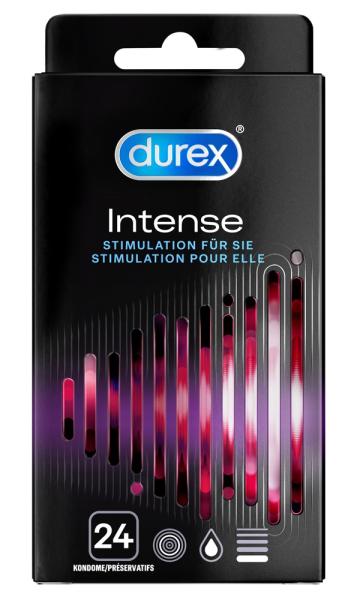 Latexkondome mit Rippen, Noppen und stimulierendem Desirex-Gel für wärmende, kühlende und prickelnde Effekte. Mit Minz-Aroma. Ideale Passform für einen komfortablen Sitz und intensives Empfinden. Transparent und befeuchtet auf Silikonbasis. Mit Reservoir. Gesamtlänge 205 mm, Nennbreite: 56 mm. 24 Stück.