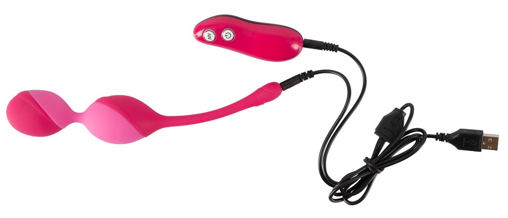 Wiederaufladbares Vibrokugel-Duo mit elastischem Rückholband und 7 Vibrationsmodi. Die Fernbedienung ermöglicht eine einfache und angenehme Steuerung der Vibration. Vibrokugeln und Fernbedienung können gleichzeitig aufgeladen werden mit den beiden enthaltenen USB-Ladekabeln.
