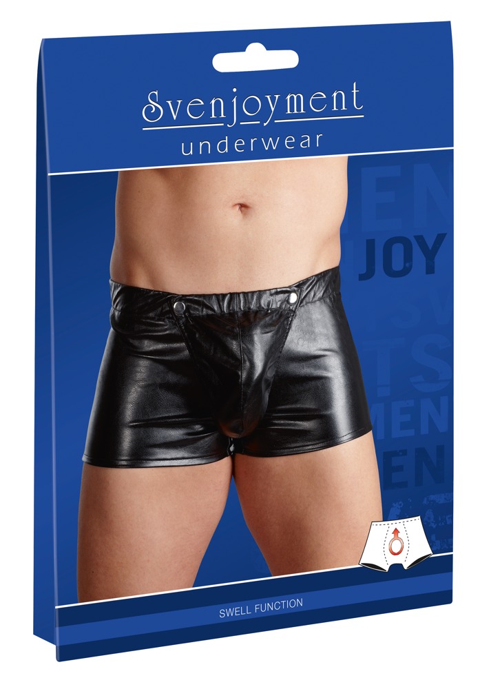 Knapp geschnittene Shorts mit Swell-Funktion und abknöpfbarem Beutel. Das edle Lederimitat macht den männlichen Look komplett. Dazu ist die Pants angenehm elastisch und passformsicher.
